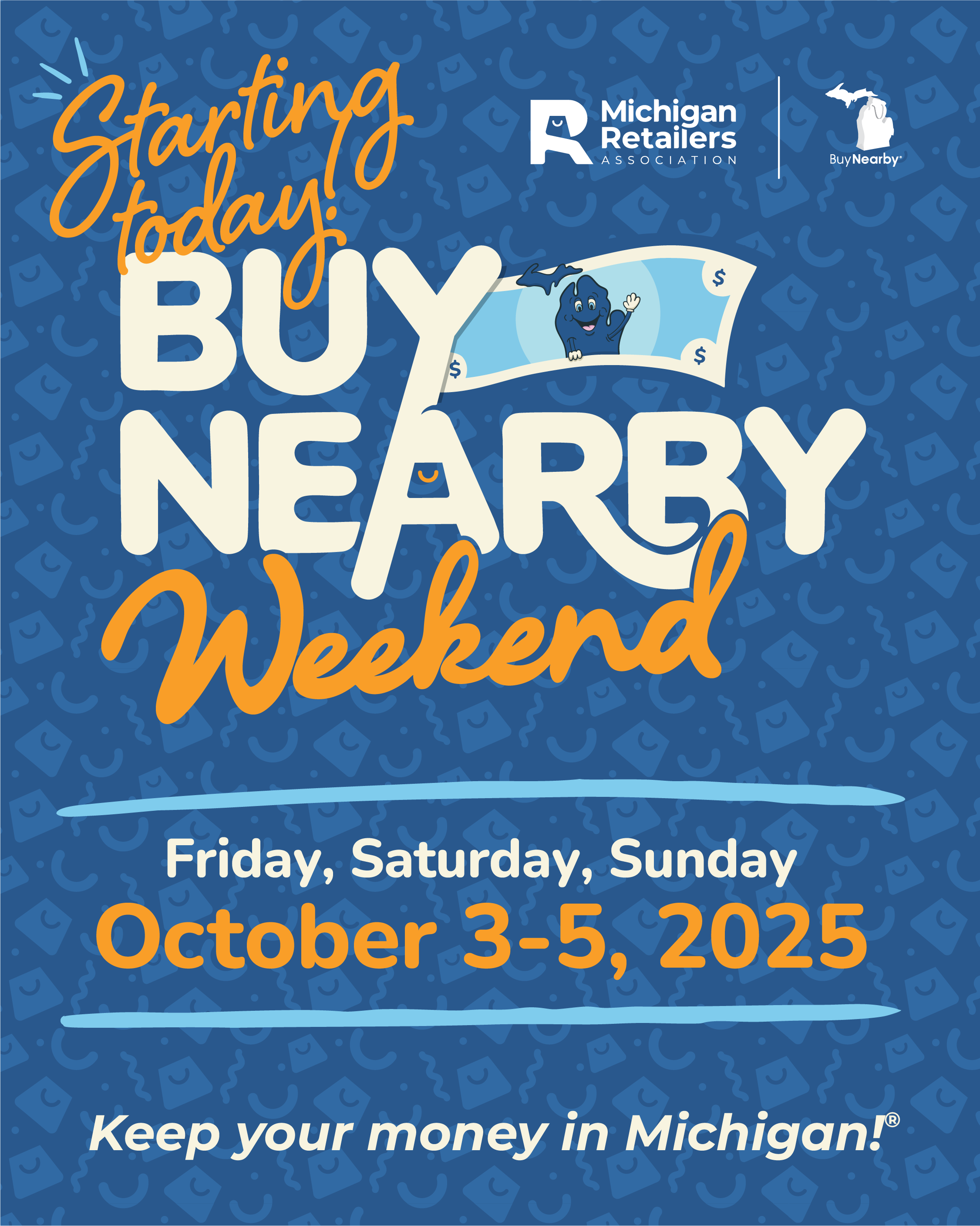 Buy Nearby Weekend, Michigan Retailers Association (MRA)’s annual celebration honoring Michigan’s retailers and small businesses, takes place this weekend from Oct. 3-5, 2025. This year’s celebration features two contests with prizes for consumers and Michigan-based retailers totaling over $1,000.